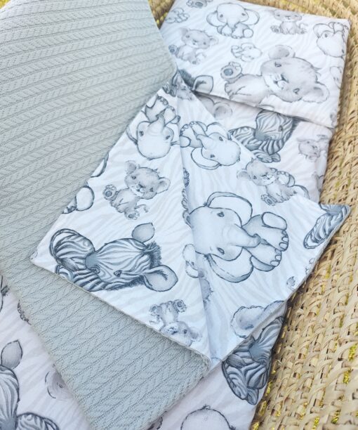 Vežimėlio rinkinys „It’s a boy“ – pledas su pašiltinimu, pagalvėlė ir paklodė su guma