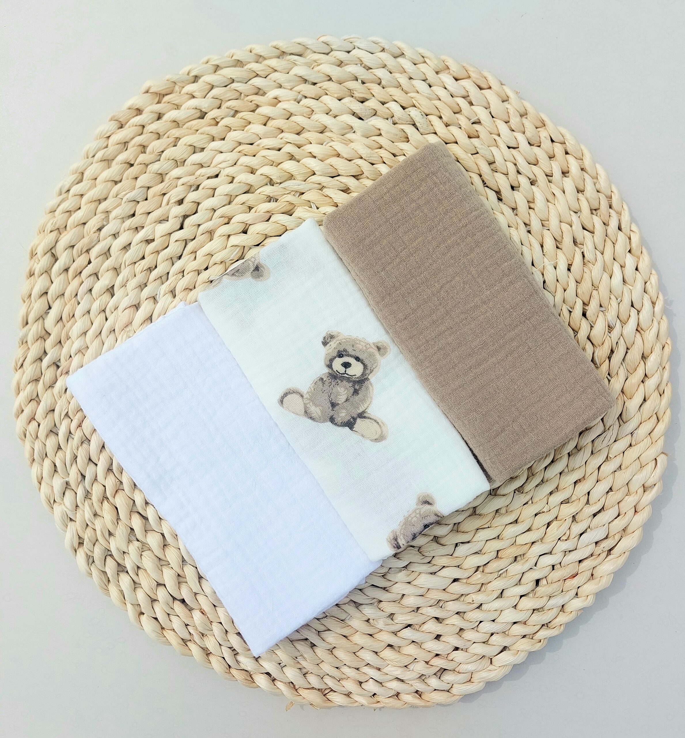 Muslinas – tai ypatingos pynimo technologijos medvilninis audinys, kuris yra lengvas, plonas, bet kartu ir tvirtas. Jis leidžia odai kvėpuoti, neleidžia kauptis drėgmei, todėl yra vienas iš populiariausių pasirinkimų kūdikių tekstilei. Kiekvieno skalbimo metu muslinas tampa dar švelnesnis, todėl muslino marliukų rinkinys su laiku tampa dar malonesnis naudoti.